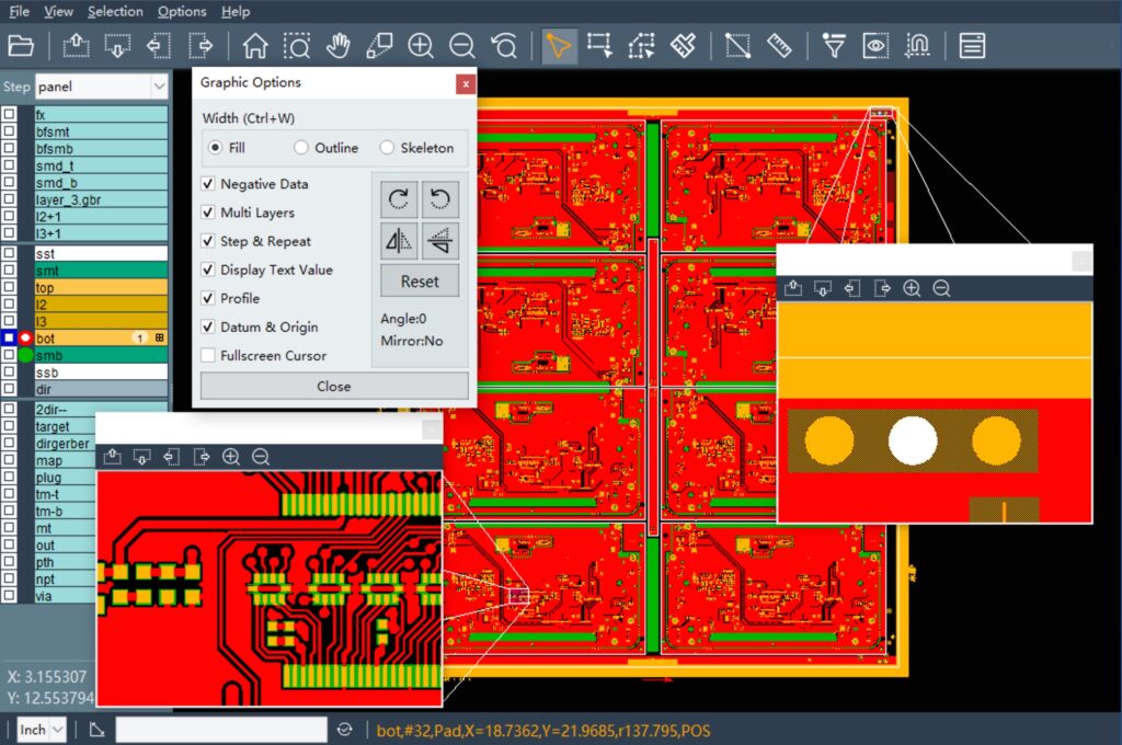 OpenCAM是由無錫東領(lǐng)智能科技股份有限公司開發(fā)的一款輕量級PCB CAM圖形查看器。基于C++開發(fā),具有超高的圖形顯示效率,完全支持ODB++8.1格式。